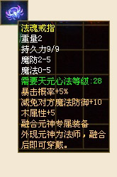 融合神器,经上古炉火配合各种灵石熔炼而出的极品装备。由于一般肉体无法承载其强大的灵力,所以仅是内敛与外现元神融合后的融合元神才可穿戴!